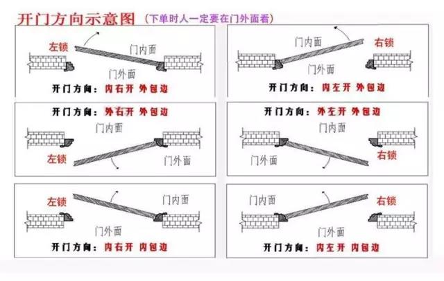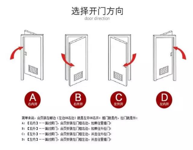 首先,我們要知道,開(kāi)門的方向可以分為:內(nèi)左、內(nèi)右、外左、外右四個(gè)方向,這四個(gè)方向各部相同。其實(shí)在選擇開(kāi)門方向的時(shí)候,首先是根據(jù)個(gè)人的習(xí)慣和家人的習(xí)慣來(lái)選擇門開(kāi)啟的方向的,使用順手才是最關(guān)鍵的。